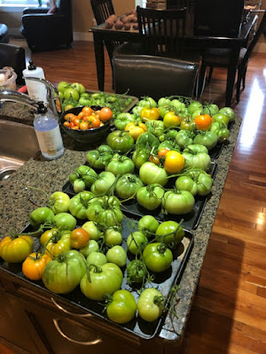 I also culled about 25% of the tomatoes (the ones sitting on the ground) and brought them in. Hopefully this will free up some energy for the plants to open the rest on the vine.